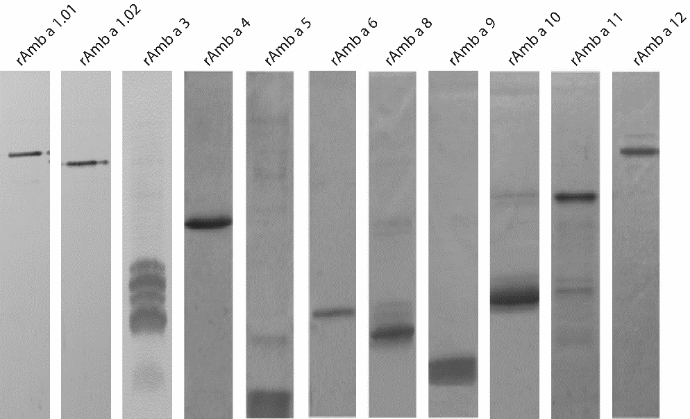 Pe baza acestui profil au fost identificate și caracterizate alergenele din polenul de ambrozia (Ambrosia artemisiifolia). Pentru a efectua caracterizarea, s-a identificat secvența proteică a acestor alergene din bazele de date (allergen.org) și s-a realizat un construct pentru expresia acestora în celule procariote, Escherichia coli, și eucariote, Spodoptera frugiperda (Sf9).